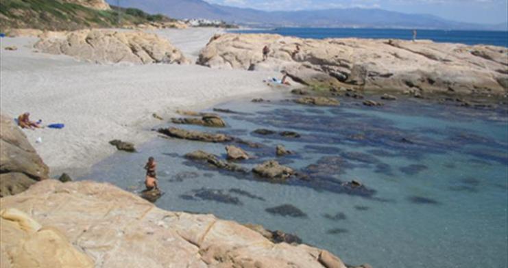 - Playa Chica: elle va depuis l'accès routier de la N-340 jusqu'au ruisseau la Parrilla. De largeur irrégulière, de 20 m à 50 m.