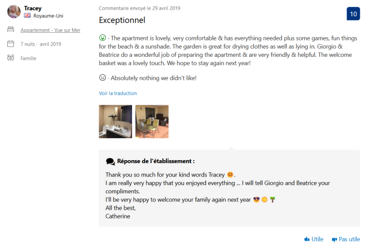 Votre commentaire me fait très plaisir :-) Je suis ravie que vous vous soyez plu à "Casa Julia" et c'est avec grand plaisir que nous vous accueillerons de nouveau ;-)