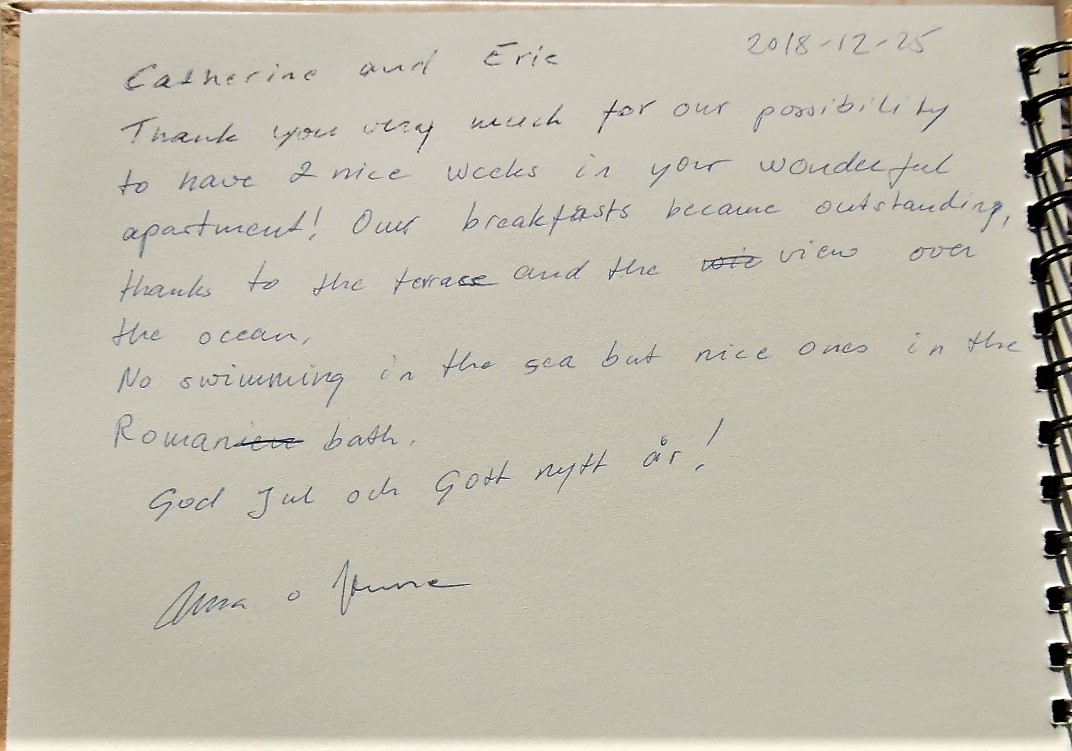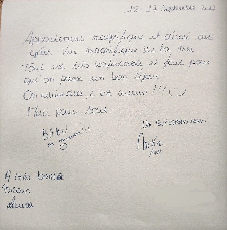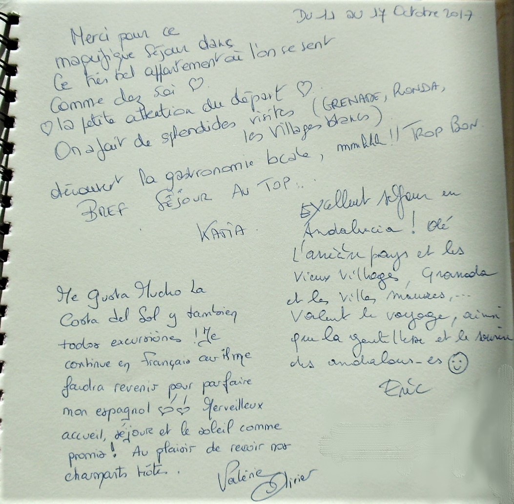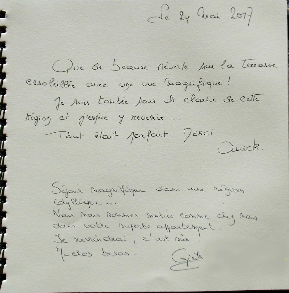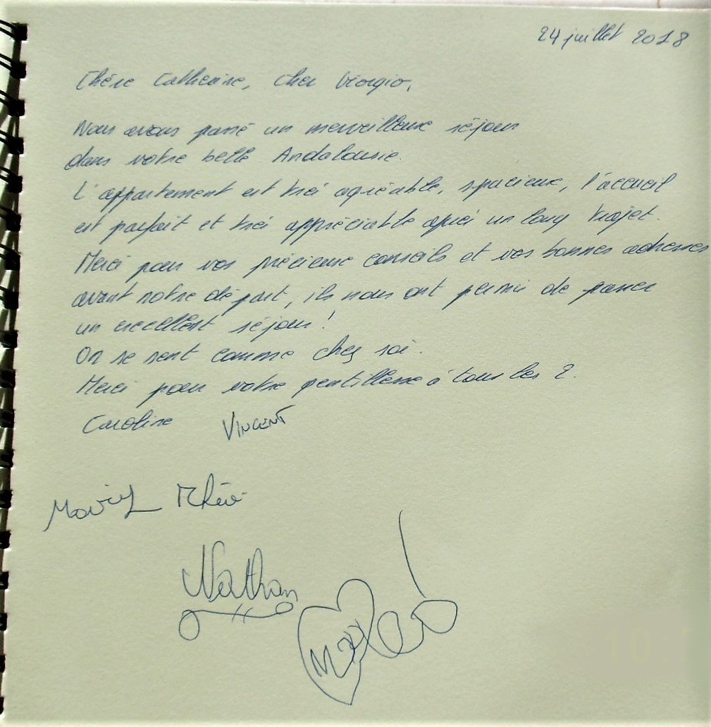 Notre livre d'or a pour but de recueillir le ressenti de nos vacanciers durant leur séjour à "Casa Julia".
